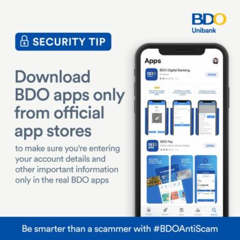 To protect data security, BDO Unibank advises its clients to download its mobile apps exclusively via official app store platforms.
