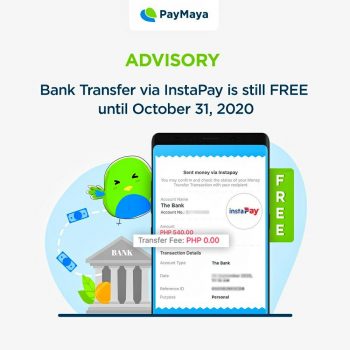 To enable all Filipinos to continue availing of safe and convenient financial transactions, sending money from PayMaya to other banks and e-Wallets via InstaPay will continue to remain free until October 31, 2020. Sending money from PayMaya to PayMaya also remains free of charge.