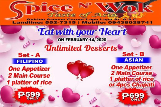 It is that time of the year when we here at Gensan News Online give you our list of the various dining establishments with Valentine’s Day promos. For the Valentine’s weekend this 2020 beginning on February 14, we have gathered some notable ones.